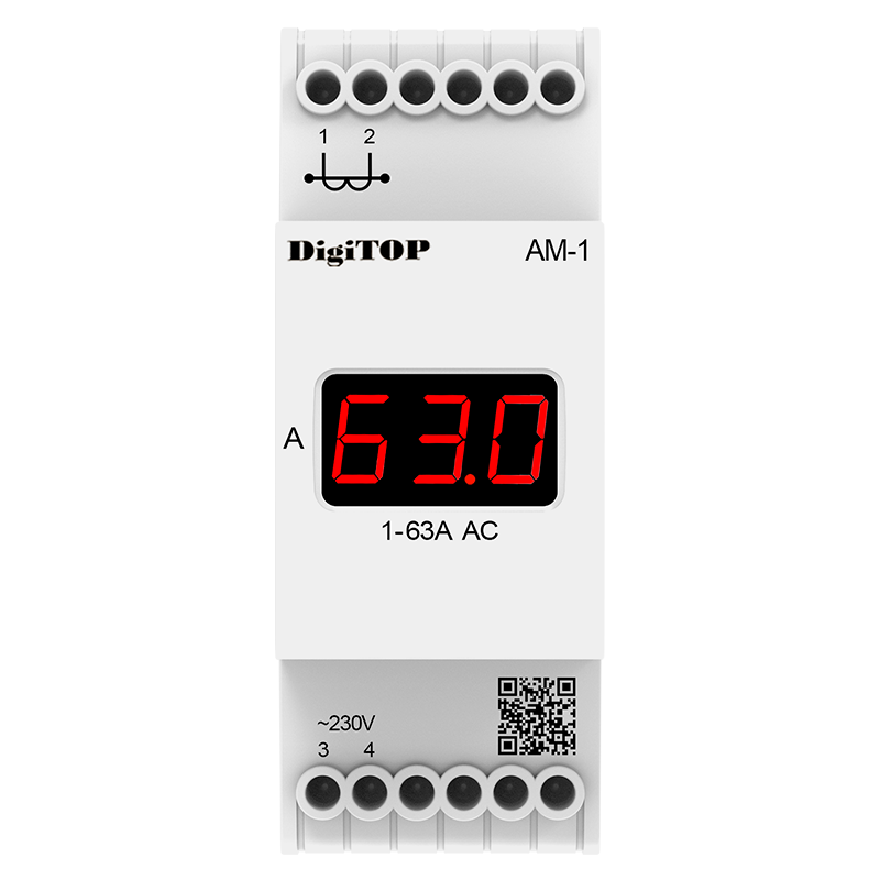 Amperomierz cyfrowy AM-1 przeznaczony jest do pomiaru prądu przemiennego o częstotliwości 50Hz w sieci jednofazowej z wartością prądu wyświetlaną na cyfrowym wskaźniku LED. Pomiar prądu odbywa się za pomocą zewnętrznego przekładnika prądowego (w zestawie).