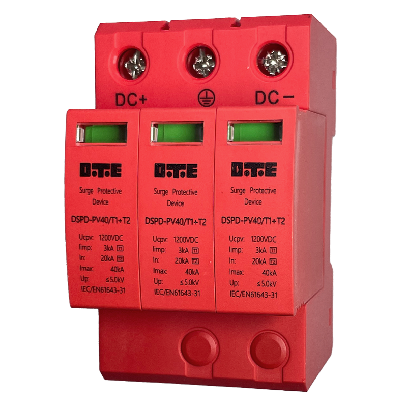 Ogranicznik przepięć DSPD-DC1200-40 3P klasy T1+T2 (B+C) służy do ochrony instalacji fotowoltaicznej przed napięciami indukowanymi, łączeniowymi oraz wywołanymi przez czynniki atmosferyczne.